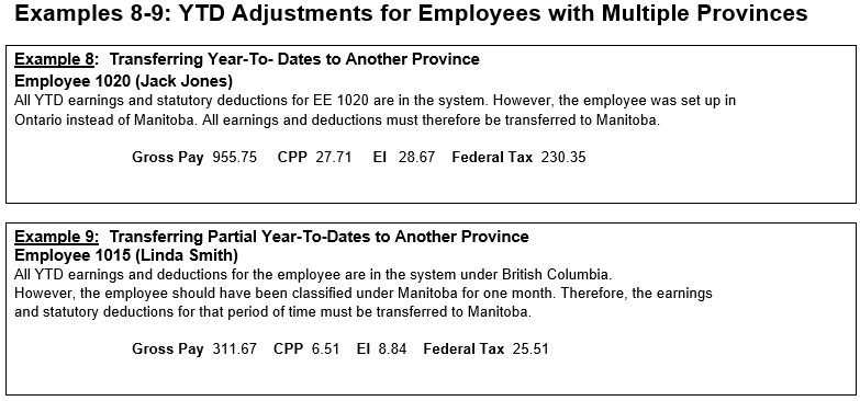 When an employee's earnings are recorded to a wrong province, in addition to the tax forms produced at the end of the year, there are impacts to provincial deductions and remittances. You are responsible to notify the respective government agencies and remit any monies due or request a refund.