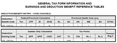 General Tax Information and Earnings and Deduction / Benefit Reference Table