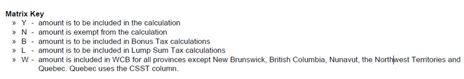 - Each code has correct tax, EI, CPP, QPP, QPIP implications