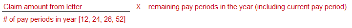 If you have claimed the amount(s) for the employee from the start of the year on another payroll system, the following calculation must be completed to determine the amount to enter in Powerpay.