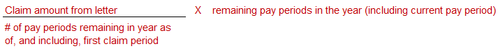 # of pay periods remaining in year including first claim period = 24 - 7 = 17