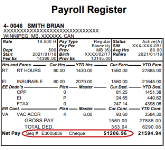 The payment amount and the sequence number of the cheque or direct deposit (EFT) is found on the Payroll Register report in the Standard Reports Package.