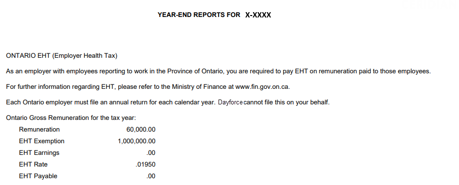 Dayforce will remit the Year-to-Date Employer total for ONT. EHT on March 14.