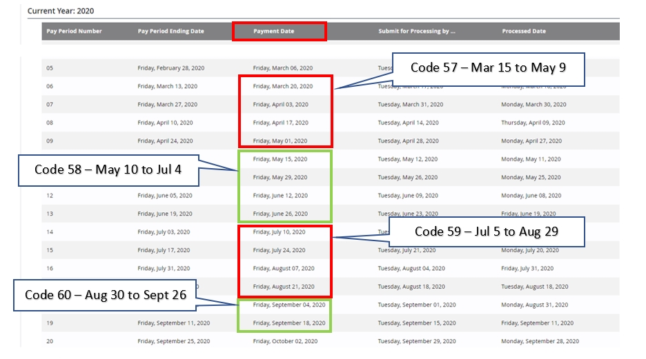 The 2020 T4 form will include four new Other Information Codes (57 to 60) that report subtotals of employment income (Box 14 or Code 71) paid to individuals during the following four periods based on the payment date:
