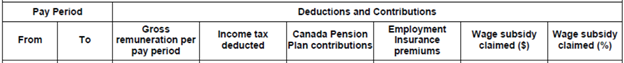 Subsidy Claimed – the amount entered in the a ‘Reduce Remittance By’ amount on the COVID Wage Subsidy page for the business number and pay period.