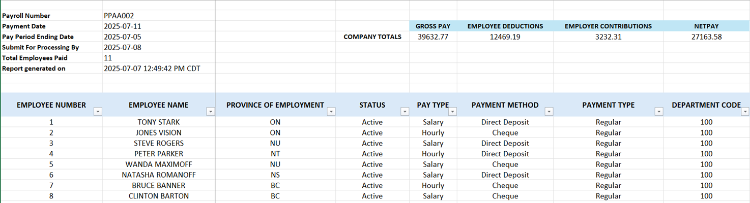 Quickly identify any unexpected values and cross-reference them to Powerpay for correction.