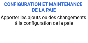 Mettre à jour les configurations et les calculs relatifs aux gouvernements provinciaux et fédéral; p. ex., taux réduits d’AE, cotisations à la CNESST, cotisations au titre de l’ISERenseignements sur l’entreprise