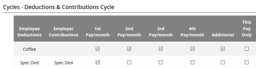 Pour afficher une description personnalisée des colonnes dans la page Cycle de retenues et cotisations, cochez la case située dans la rangée correspondant à la description personnalisée.