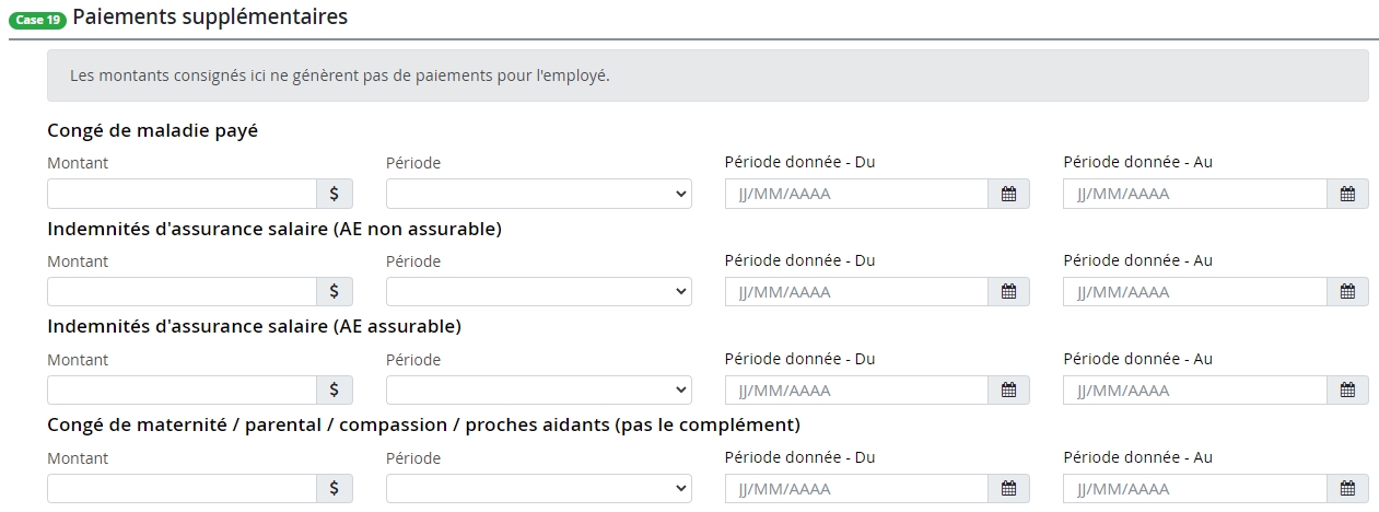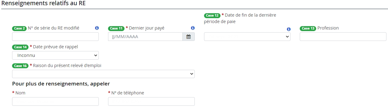 Cette page permet aussi de produire un relevé d'emploi (RE) pour un employé