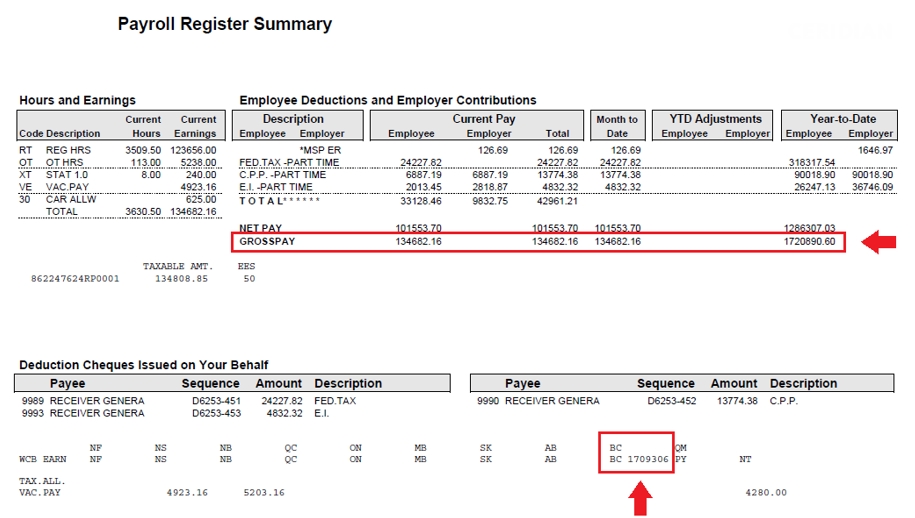 1. Obtenez le montant des gains imposables à la CAT indiqué à la ligne WCB EARN.