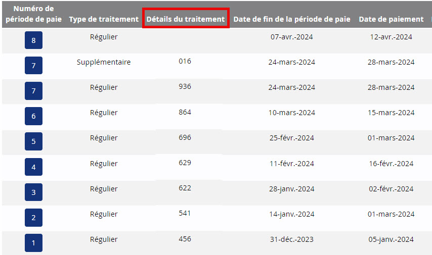 Conseil : Prenez soin de noter le dernier numéro de période de paie inclus dans votre rapport précédent afin d’éviter de l’inclure de nouveau lors de votre prochaine demande.