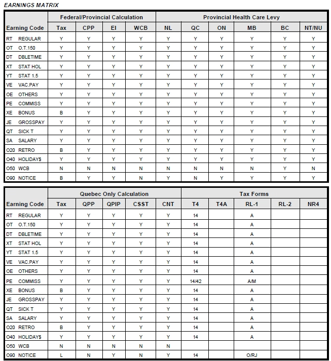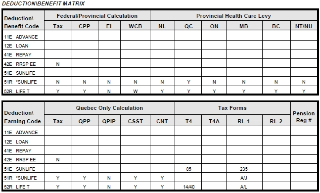 Passez en revue le tableau matriciel des gains ou le tableau matriciel des retenues et des avantages. Ce rapport affiche chaque code, et les valeurs inscrites dans les cases se répercutent sur le formulaire fiscal.