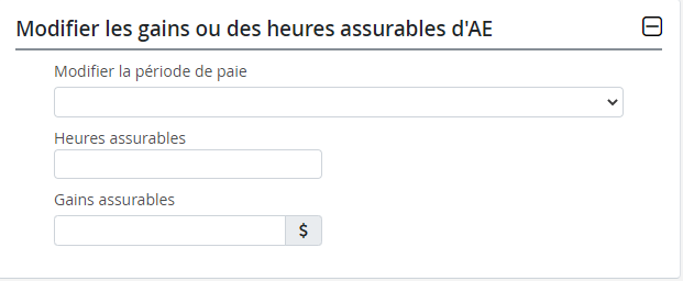 **Les heures assurables de la période de paye qui contient le premier jour de travail doit être entre 0.01 et 999.99 inclusivement (décimale incluse).