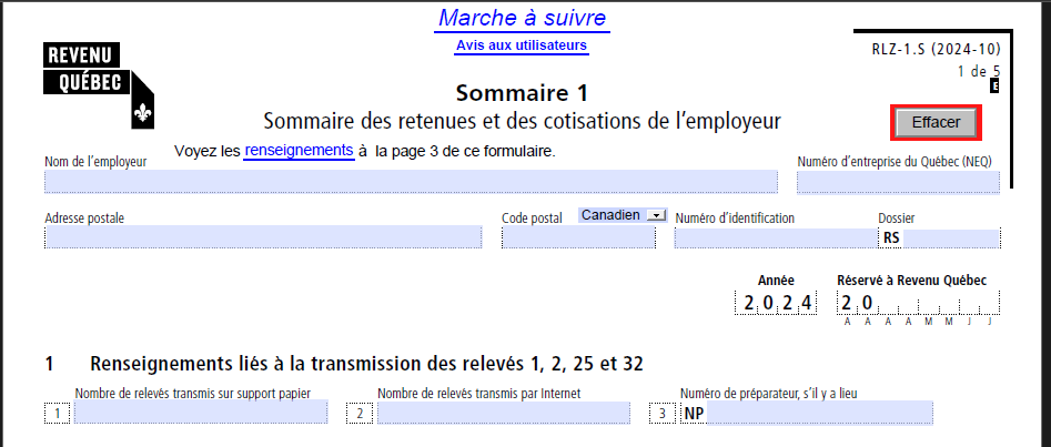 Le sommaire 1 sert à déclarer les montants payés à Revenu Québec.
