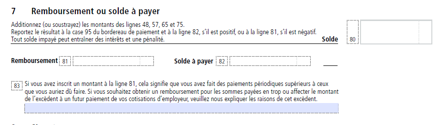 Remboursement ou solde à payer