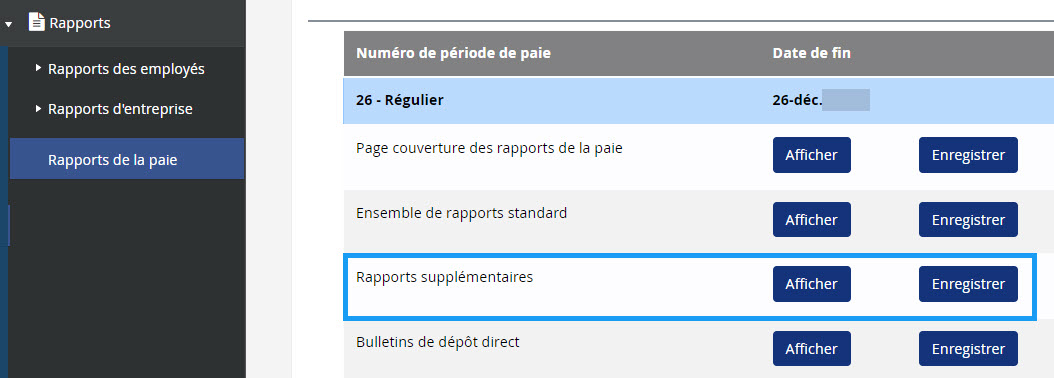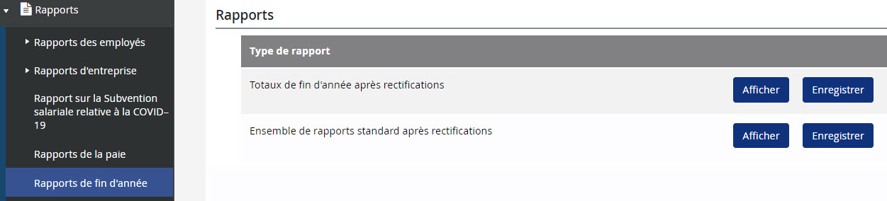 Pour accéder au rapport à partir de la dernière paie de l'année ou d'un traitement supplémentaire, accédez à la