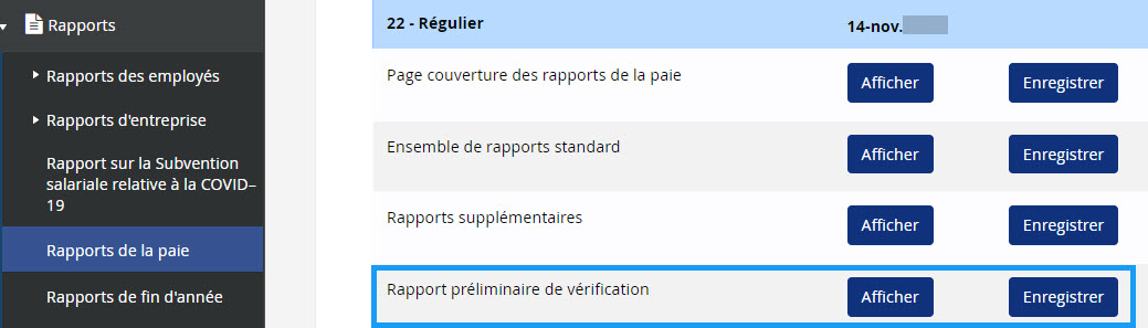 | Rapport préliminaire de vérification de fin d’année | Accédez à la Disponible avec la première paie de novembre. |